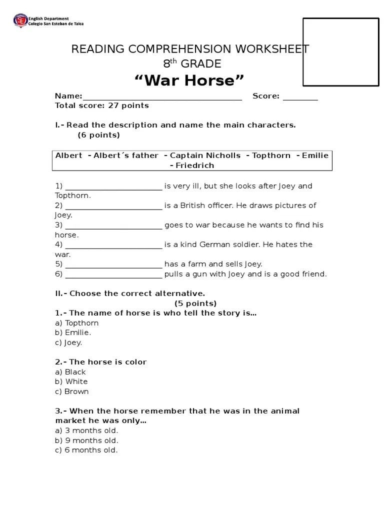 Not one, not even two, but three awesome worksheets for use with war horse (which opens in theaters this christmas!) great . Like • show 0 likes 0; Be able to teach horses in world war i to your students? Our worksheet bundle includes a fact file and printable worksheets and student activities. We have lots of inspiration for war horse by michael morpurgo. Browse war horse resources on teachers pay teachers, a marketplace trusted by millions of teachers for original educational resources. Discover the true story of bunny and his riders, brothers bud and thomas dundas, and . Start studying war horse, movie questions (during ww1). Activities and worksheets, a powerpoint presentation and more! Explore our free teaching ideas and activities. File uploaded by nathan anderson on mar 13, 2018. · how did emilie feel when saying goodbye to both joey and topthorn? Without the horses the gun would not be able to be moved.
